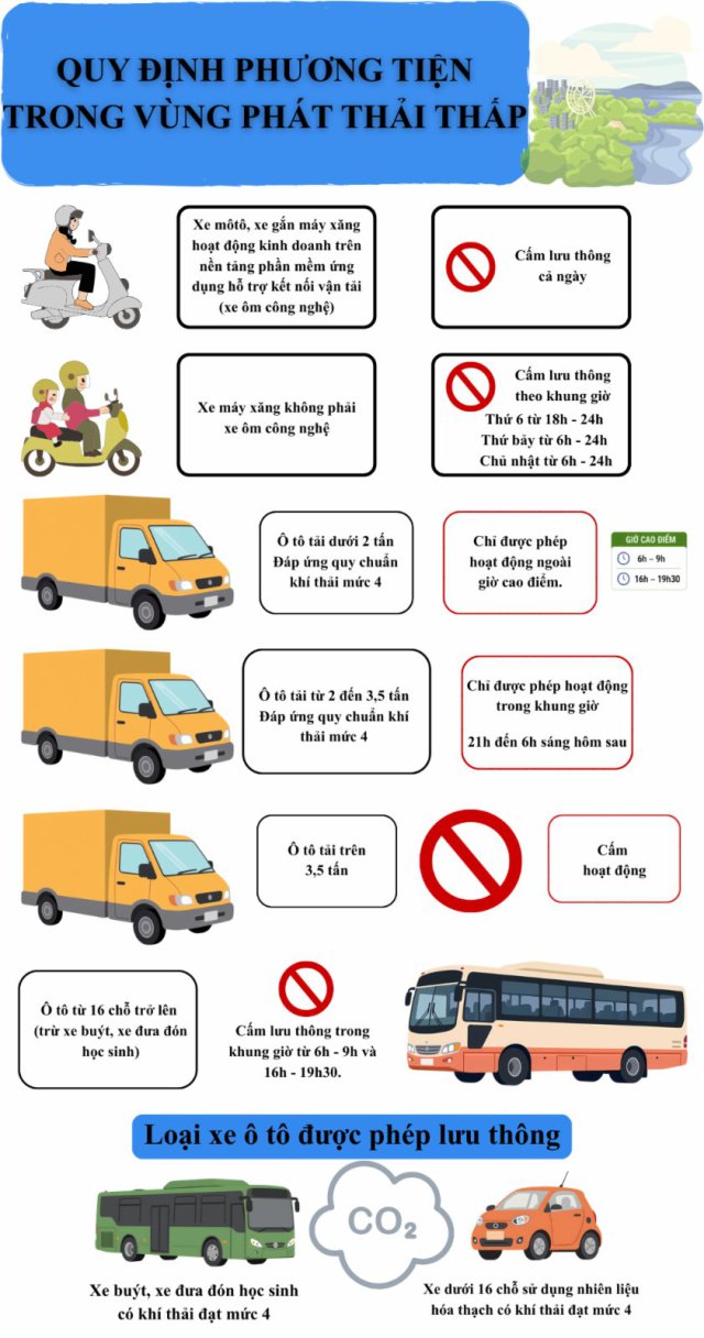 Không chỉ xe máy xăng, dự thảo còn đưa ra hàng loạt quy định cụ thể đối với các loại phương tiện khác, nhằm đảm bảo hiệu quả tổng thể của vùng phát thải thấp.