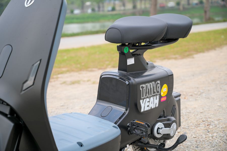 Xe có bàn đạp hỗ trợ khi hết điện hoặc đi chậm trong khu đông người. Thiết kế gọn gàng, dễ dùng, mang lại sự chủ động cho người lái.