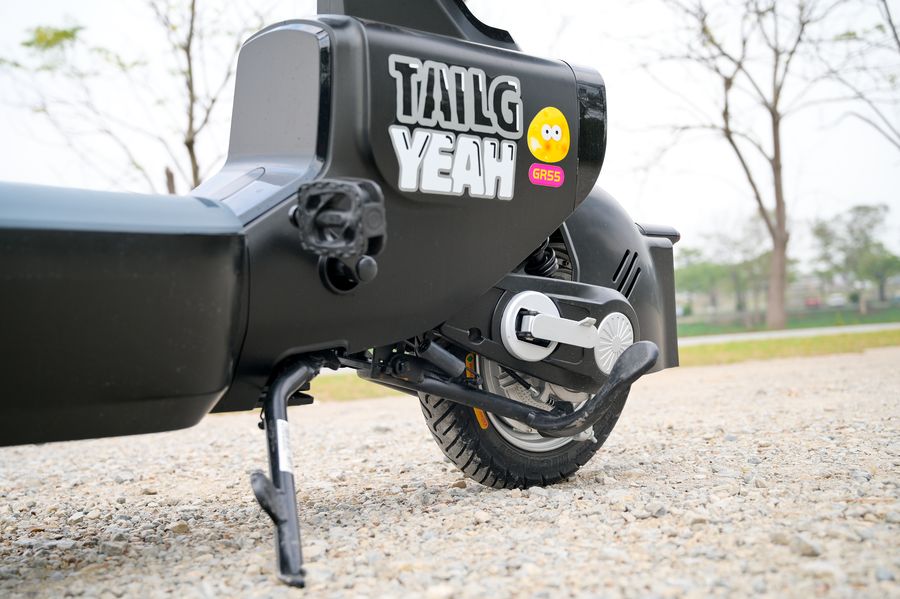 Trang bị bánh xe kích thước 10 inch vừa vặn, Tailg GR55 giữ được sự gọn gàng nhưng vẫn đảm bảo độ bám và ổn định trên đường. Kết hợp với bộ vành nhôm đúc nguyên khối, xe cho cảm giác chắc chắn khi vượt qua ổ gà hoặc đi trên bề mặt gồ ghề. Thiết kế này giúp người lái an tâm khi di chuyển trong điều kiện đường phố Việt Nam.
