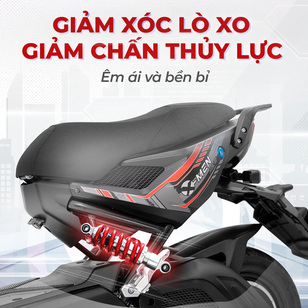 Về mặt tiện ích, Xmen Sport được trang bị đầy đủ các phụ kiện cơ bản bao gồm gương chiếu hậu, sạc, và sổ bảo hành chi tiết. Xe có khả năng tải trọng lên đến 180kg, một con số đáng nể đối với xe máy điện, chứng tỏ kết cấu khung xe vững chắc. Trọng lượng xe là 95kg, đủ đầm để giữ thăng bằng tốt, nhưng vẫn linh hoạt khi di chuyển trong khu vực đông đúc. Thiết kế táo bạo cùng tính năng tiện dụng khiến Xmen Sport trở thành một lựa chọn thực tế và đầy phong cách.