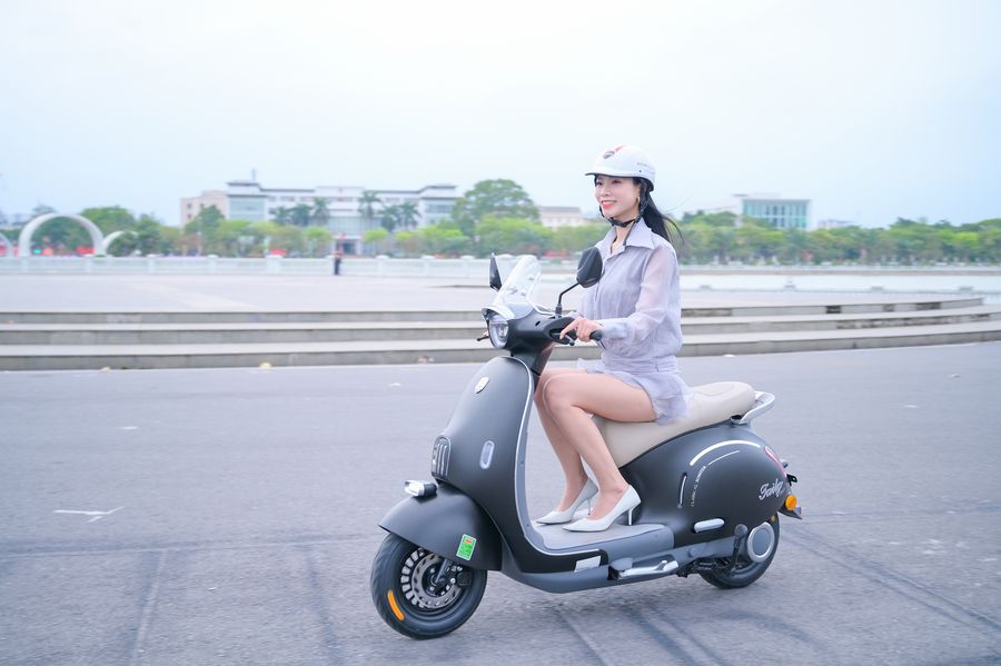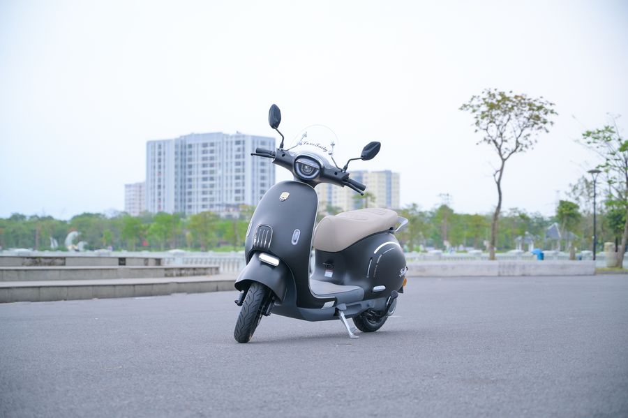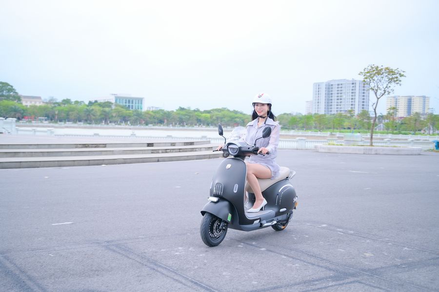 Xe tăng tốc mượt, phản hồi ga tuyến tính, không gây cảm giác giật cục khi bắt đầu di chuyển. Vận tốc tối đa khoảng 45 km/h được xem là mức lý tưởng cho giao thông nội đô – đủ nhanh để đi lại linh hoạt nhưng vẫn dễ kiểm soát, đặc biệt với học sinh hoặc người mới sử dụng xe điện.