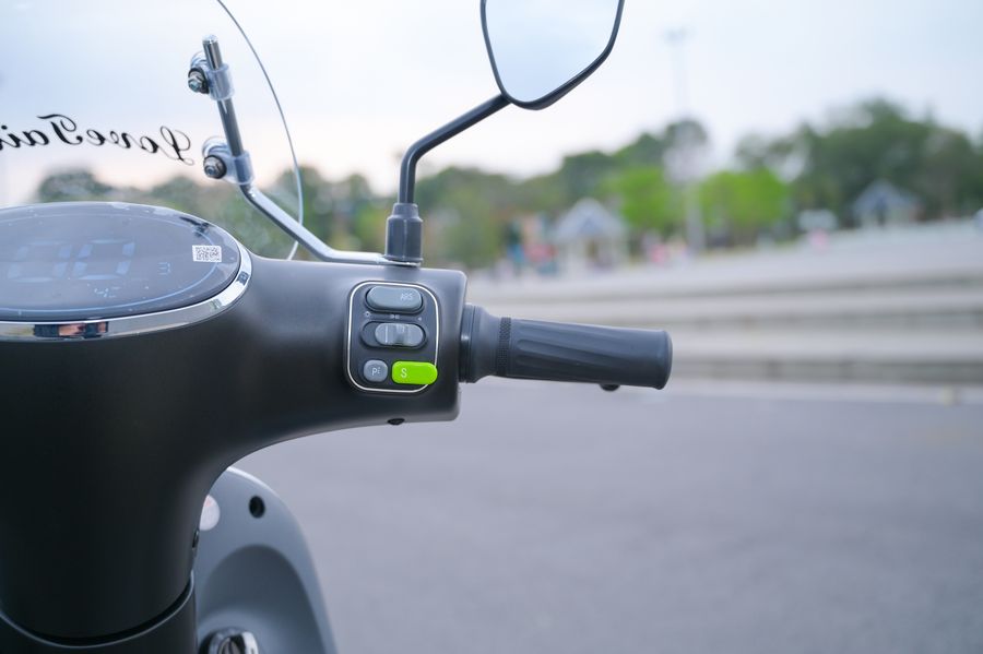 Cụm điều khiển được bố trí trực quan, dễ làm quen kể cả với người lần đầu sử dụng xe điện. Nút S (Sport) cho phép phản hồi ga nhanh hơn khi cần tăng tốc, trong khi nút P (Parking) hỗ trợ giữ xe ổn định khi dừng trên địa hình hơi nghiêng. Những chi tiết nhỏ này giúp quá trình điều khiển Xe Máy điện Tailg R60 trở nên linh hoạt và an toàn hơn.
