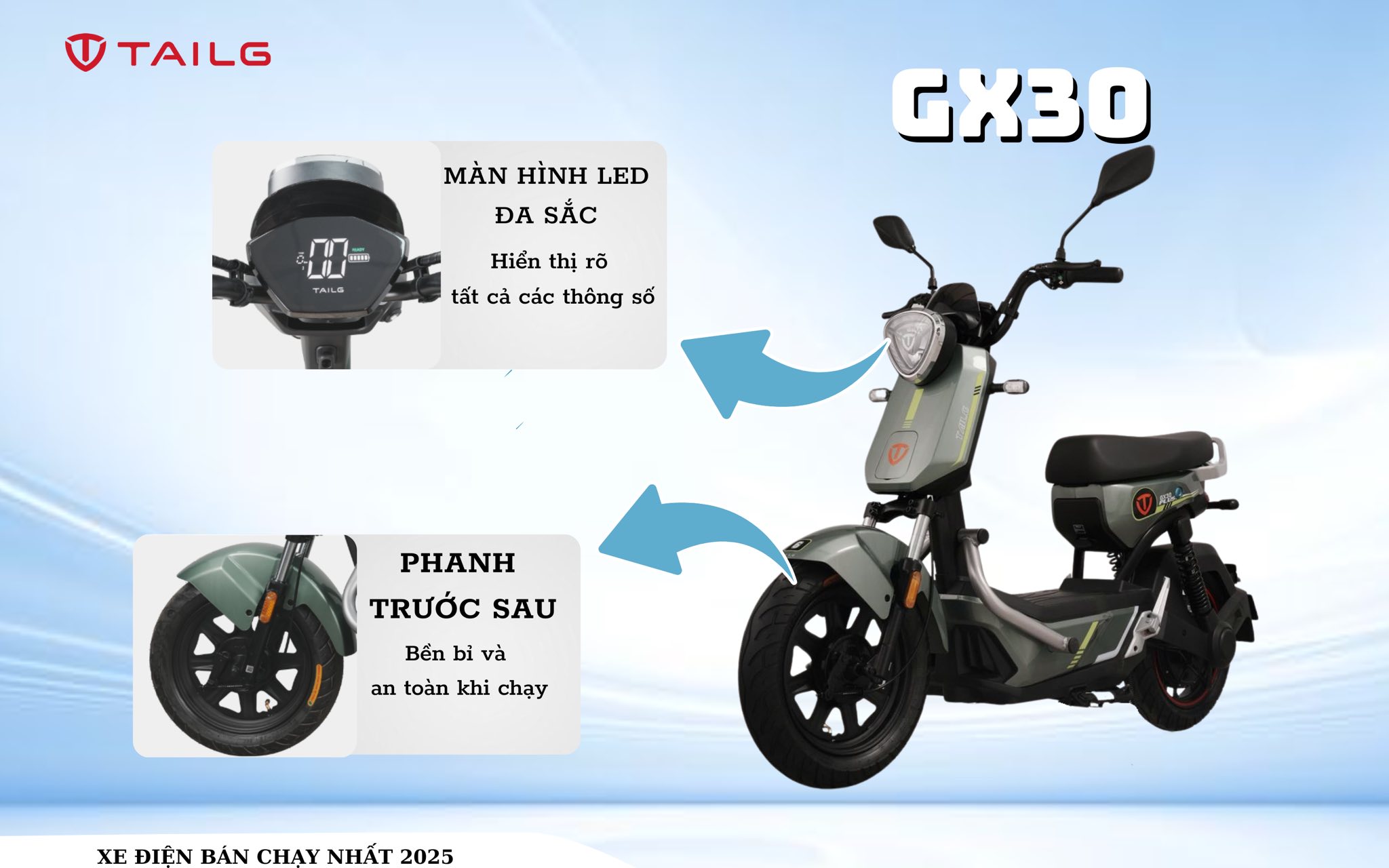 Không chỉ thu hút bởi thiết kế, Tailg GX30 Xbull còn gây ấn tượng bởi hiệu suất vận hành vượt trội. Đây là mẫu xe lý tưởng cho học sinh, sinh viên hoặc người đi làm di chuyển trong nội thành hằng ngày.