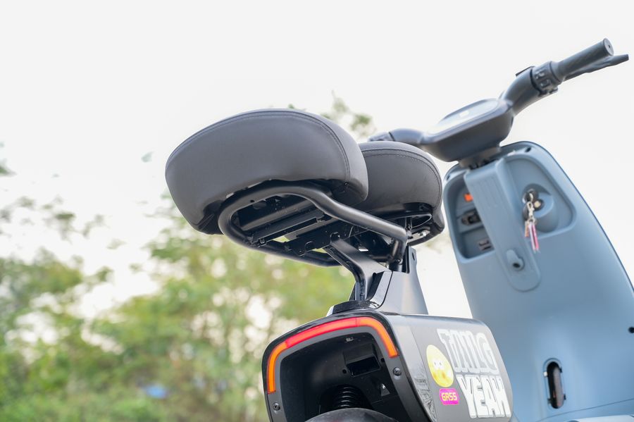Với chiều cao yên 750mm, GR55 phù hợp với người có chiều cao từ 1m50 trở lên. Yên xe đôi được bọc đệm êm, cho tư thế ngồi thoải mái dù đi một mình hay chở thêm người phía sau. Thiết kế phần để chân thấp giúp dễ chống chân khi dừng đèn đỏ, tăng độ an toàn cho người điều khiển có vóc dáng nhỏ.