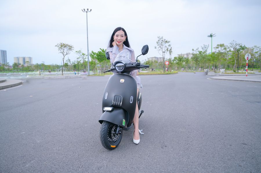 Xe tăng tốc mượt, phản hồi ga tuyến tính, không gây cảm giác giật cục khi bắt đầu di chuyển. Vận tốc tối đa khoảng 45 km/h được xem là mức lý tưởng cho giao thông nội đô – đủ nhanh để đi lại linh hoạt nhưng vẫn dễ kiểm soát, đặc biệt với học sinh hoặc người mới sử dụng xe điện.